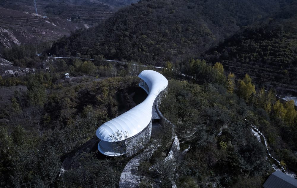 Бял павилион, наподобяващ облак, е „кацнал“ на свещената китайска планина Тай над село Донгшимен в провинция Шандун. Облачната структура, наречена Jiunvfeng Study, проектирана от Gad Line + Studios, функционира като център за посетители. Лека стоманена конструкция формира деликатния скелет на павилиона, поставен на скалист хребет, обърнат към планината Тай и големия каньон Шенлонг. Планината Тай, най-популярната свещена планина в Китай, вече 3000 години е място за поклонение. „В сравнение с великолепието на Тай павилионът е обикновен и дискретен. Искахме да изградим плаващ облак в планината, който да се присъедини към великолепното облачно море над Тай“, споделят архитектите от Gad Line + Studio.