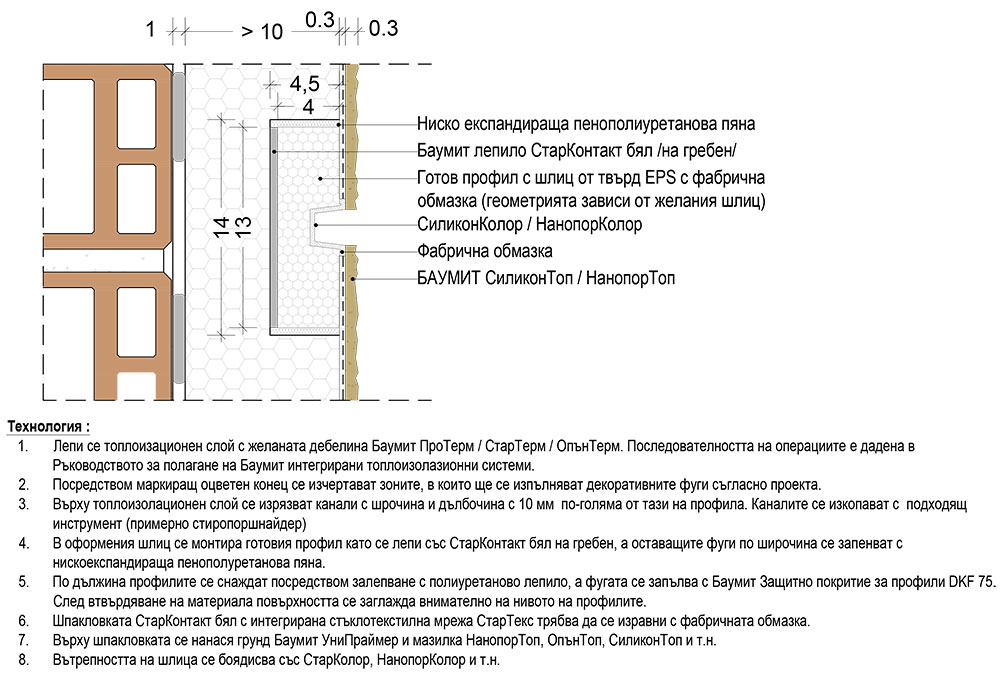 Декоративен шлиц с готов профил с фабрична обмазка и изрязване на ЕPS плоскости