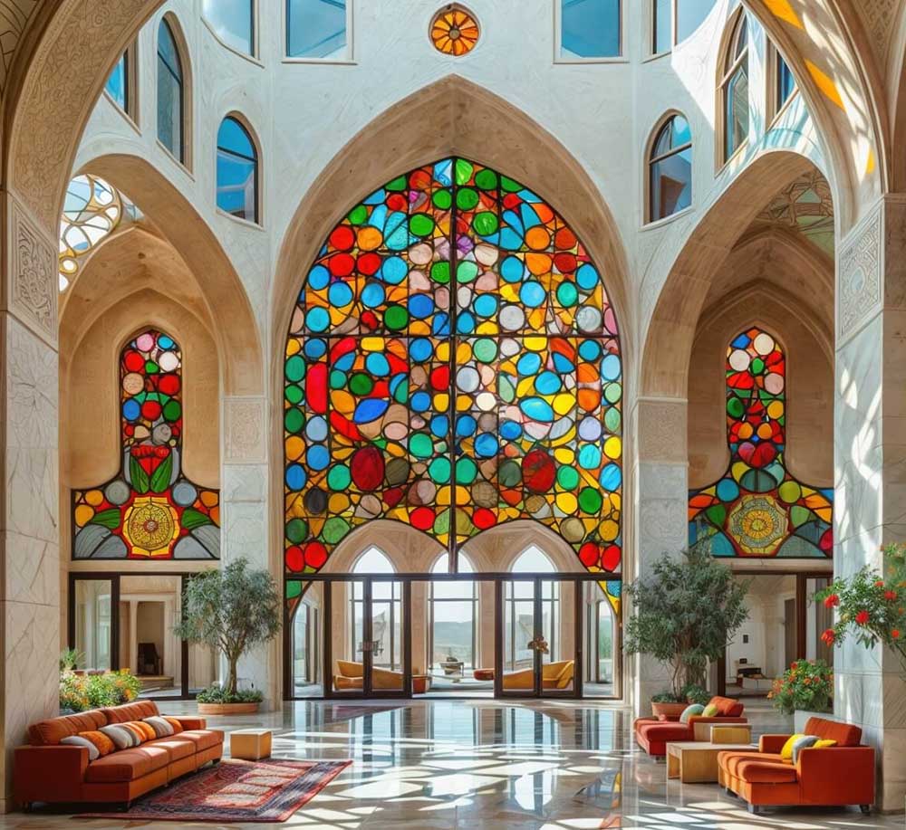 Представете си хотел, в който футуристичните извивки на Заха Хадид се срещат с вечната елегантност на иранската архитектура. Това сливане създава пространство, в което модерността и традицията съжителстват в перфектна хармония. Шеметните линии и смелите структури, характерни елементи на визионерския стил на Хадид, са обогатени от сложните детайли и богатото културно наследство на иранския дизайн. Резултатът е спиращо дъха съчетание на форма и функция, където всяко кътче разказва история за иновации и наследство.