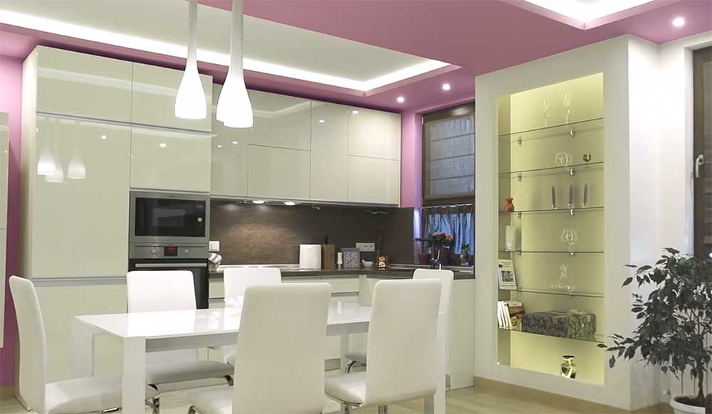 Холът на първия етаж представлява голямо отворено пространство с много, много прозорци. Има и камина за Коледа, която да стопли студените зимни дни с огъня си. Всички цветове са светли, доминира красивото люляковолилаво. В комбинация с белия цвят пространството изглежда някак пролетно и свежо. Можеш приятно да да се излегнеш на дивана, да пиеш чай с канела и да гледаш към градината, докато зимното слънце грее навън, а на теб ти е пролетно.