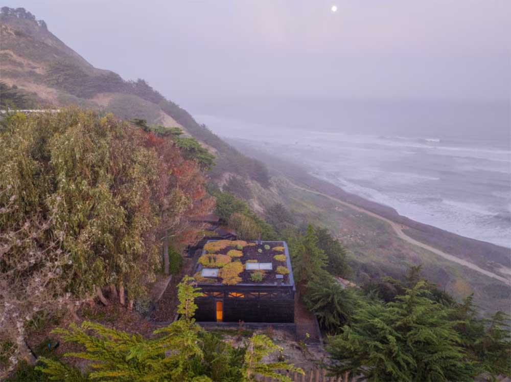 Структурата заема парцел с размери 8 × 8 метра, отделен от основната сграда, за да се възползва максимално от слънчевото изложение и широката гледка към океана. Без да прибягва до мимикрия и без да губи собствената си архитектурна идентичност, постройката се вписва в мястото с тиха сдържаност. Едноетажният обем с кубична форма е изцяло облицован с потъмнели местни борови летви, които отразяват тоновете на околната гора, и е завършен със „зелен“ покрив, омекотяващ визуалното му въздействие.