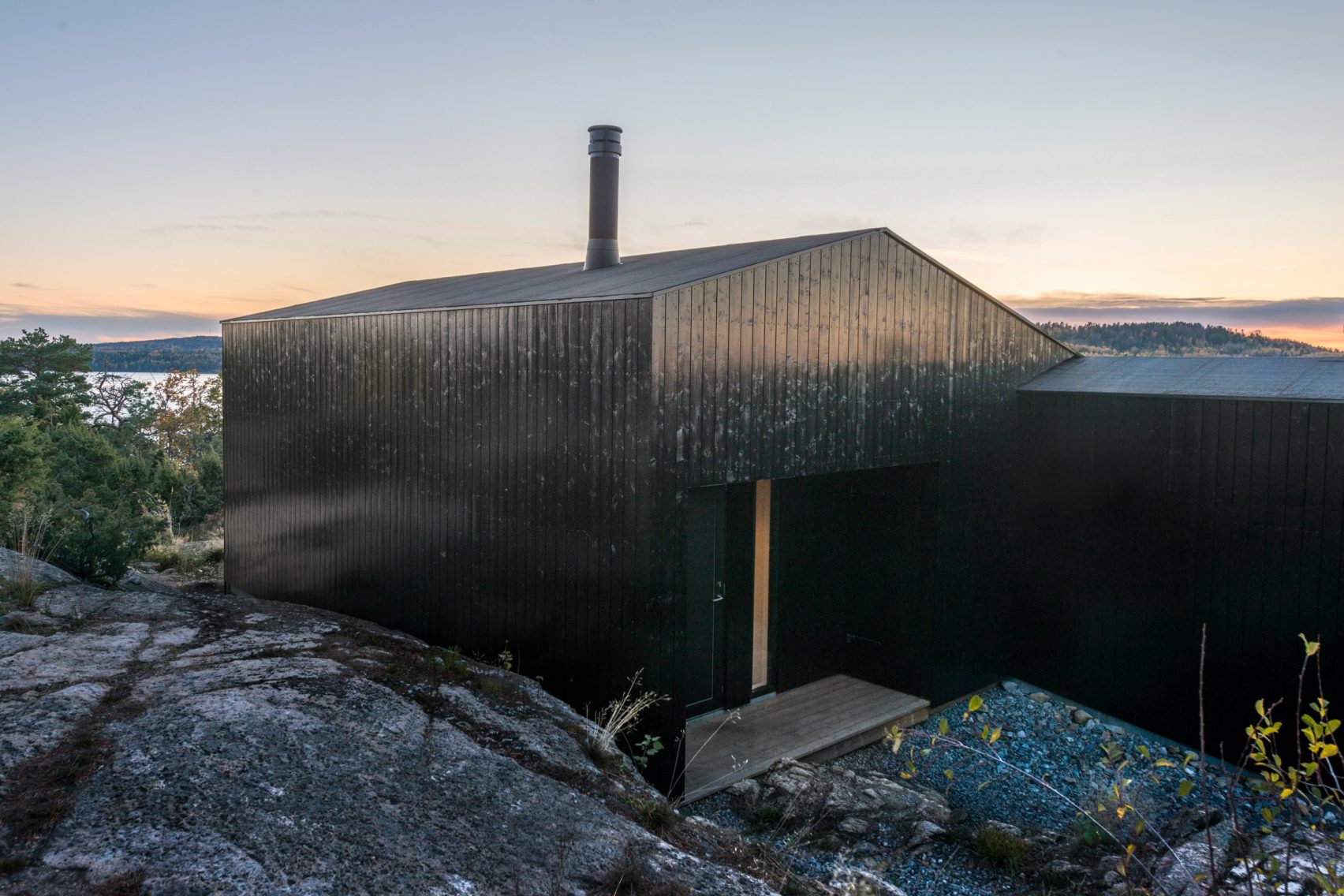 Джон Даниелсен Орхус проектира ваканционен дом, разположен на южното крайбрежие на Норвегия. Нарича го Cabin Son. Облеченият със смърч Г-образен дом е проектиран да следва естествената топография и е разпределен на три нива на терена. Орхус оставя контурите на ландшафта да направляват отпечатъка и ориентацията на структурата. Сградата има площ от 70 кв.м и функционира целогодишно като ваканционен дом за малко семейство.