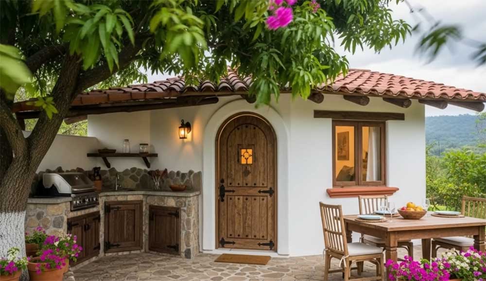 Външни кухни в стил „хасиенда” за уютни селски къщички сред сенчести дървета